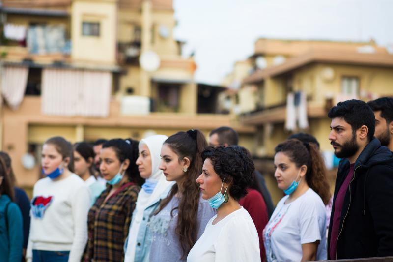 كورال المجلس النروجي للاجئين للشباب: شبان وشابات من المهجرين السوريين من منطقة عكار في شمال لبنان. هذا المشروع هو بالتنسيق مع المجلس النرويجي للاجئين.